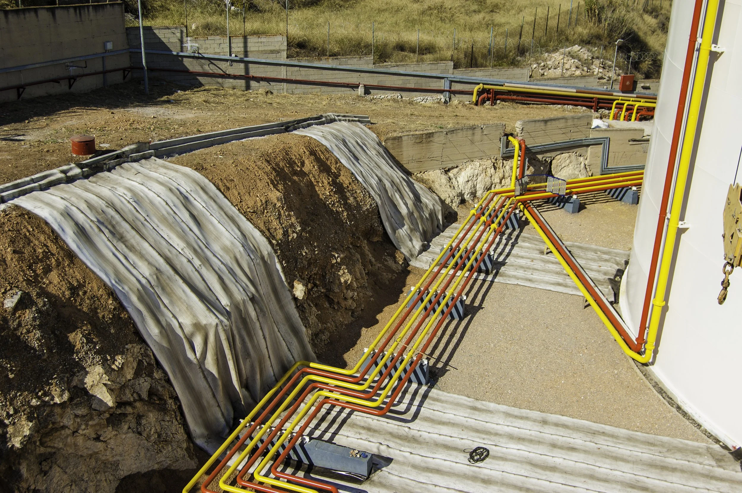 The existing bunds had been affected by weathering erosion, Heavy vegetation growth was at risk of causing fires in the summer heat, A solution was required that could accommodate the complex pipework